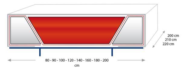 | Buitenstof gemaakt van badstof/katoen mix met 250 g/m2 | Dubbeldoeks buitenstof met een weefsterkte van 450 g/m2 |